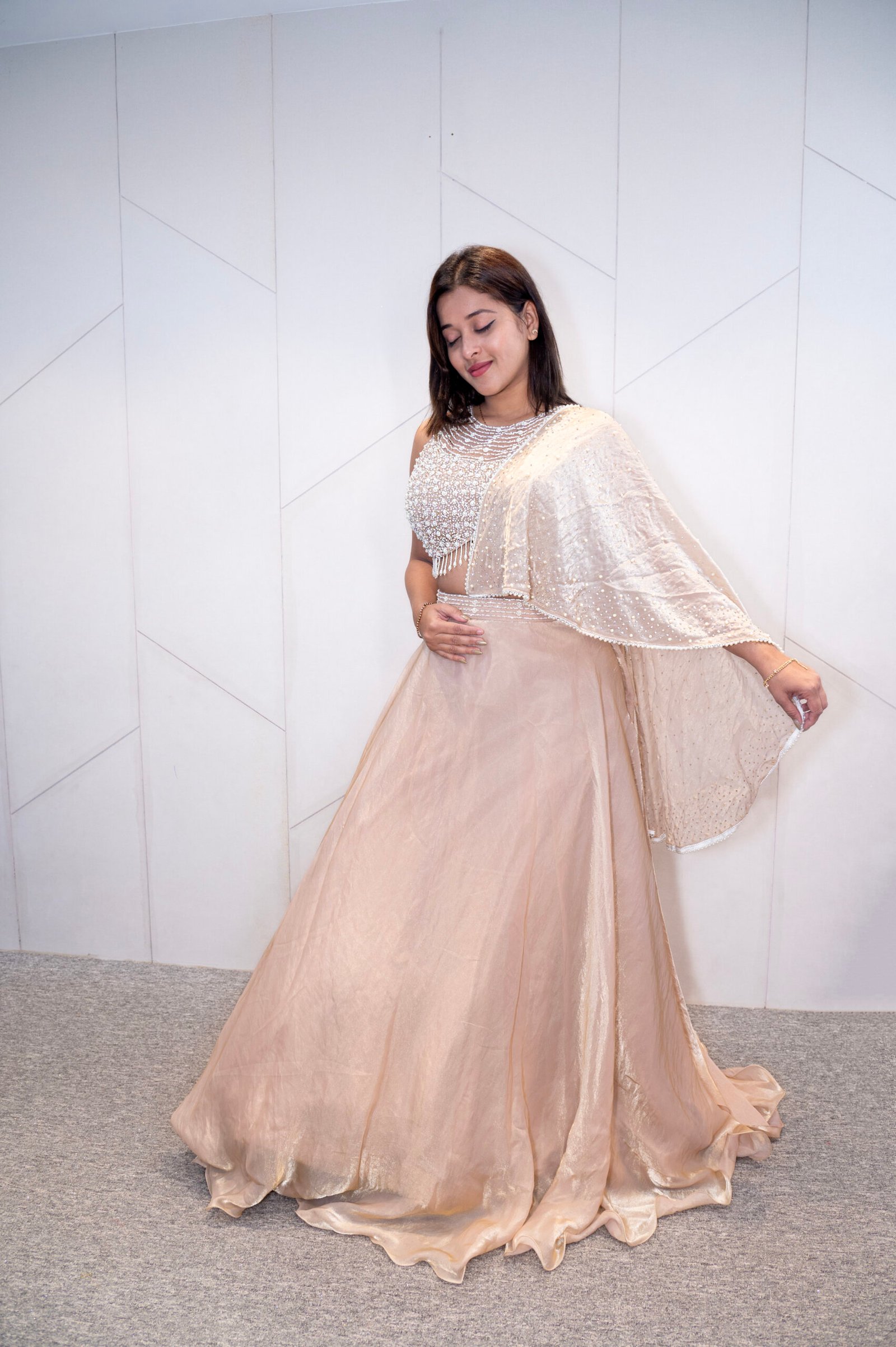Ideal for bridal wear, engagement functions, reception looks, cocktail parties, and festive celebrations, this lehenga is tailored to give a flattering silhouette and timeless appeal.