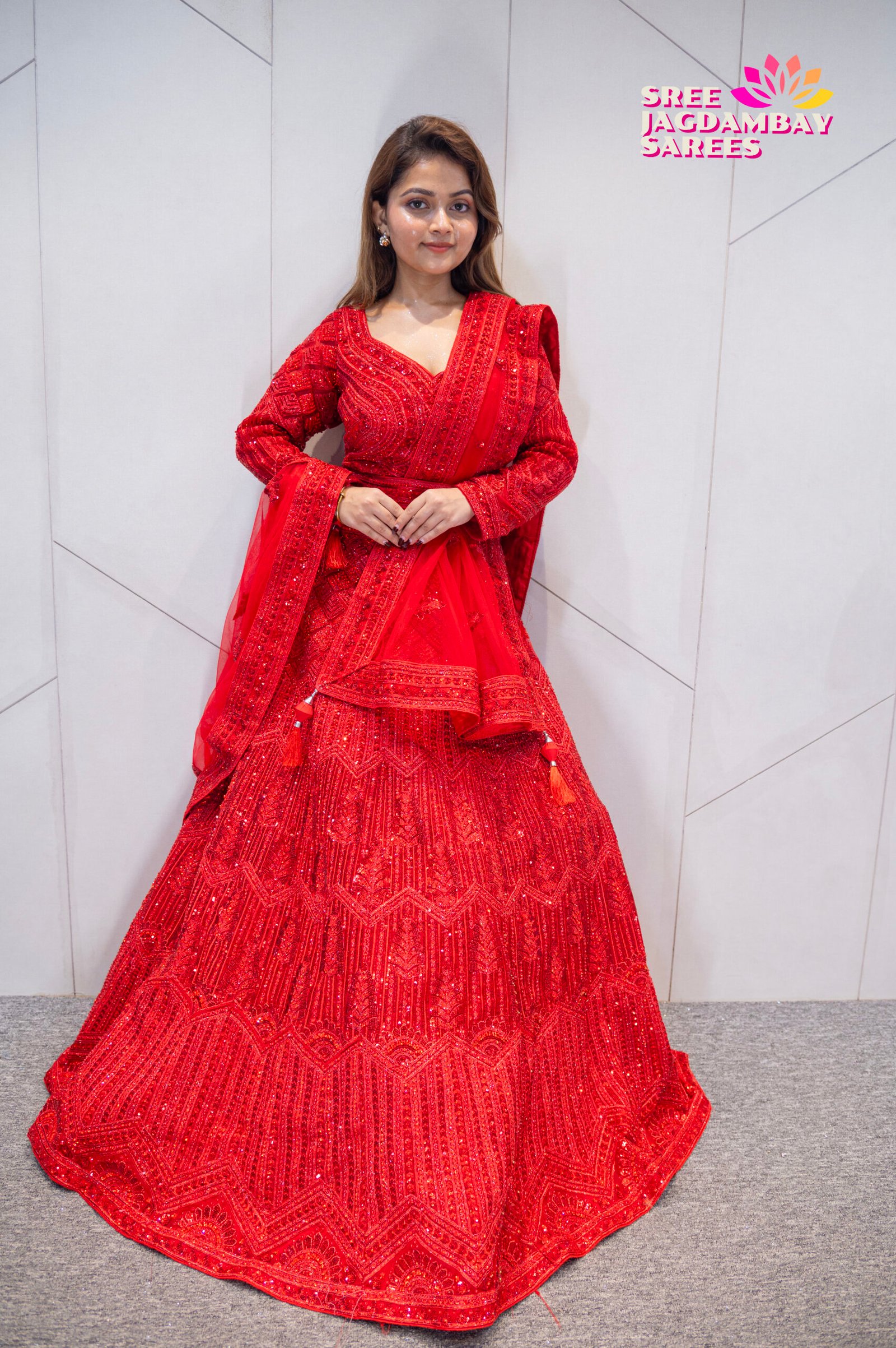 Make a powerful bridal statement with our Royal Crimson Bridal Lehenga, exclusively curated by Sree Jagdambay Boutique. This stunning lehenga set features rich craftsmanship and timeless elegance, perfect for weddings, receptions, and grand bridal occasions.